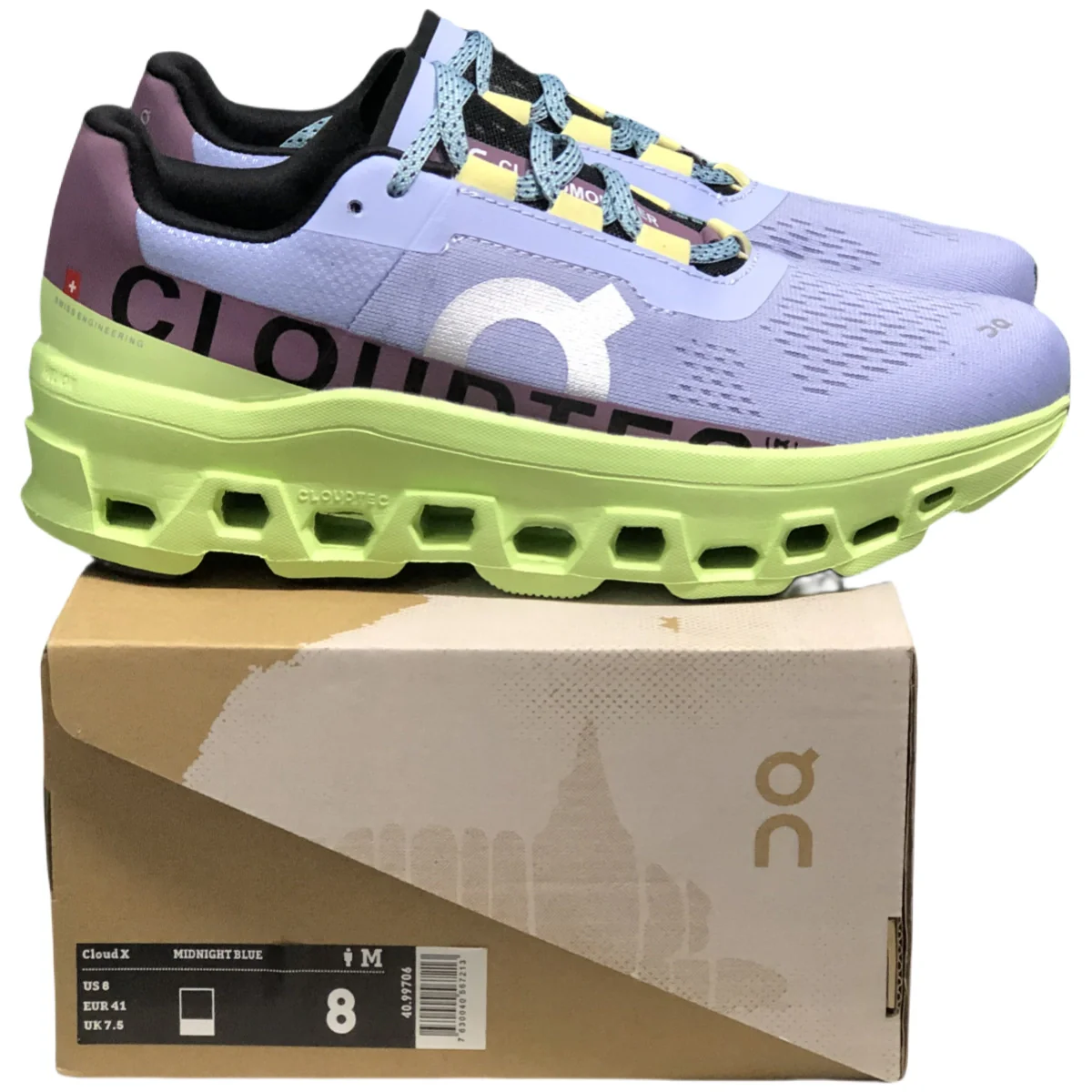 Meet the On Cloudmonster! Featuring the largest CloudTec® pods ever, this max-cushioned running shoe leads a beastly ride. Experience super soft landings on the Helion™ midsole while the signature Speedboard® provides explosive lift-offs. The radical forefoot rocker design keeps you rolling on longer runs. The On Cloudmonster is made with recycled materials for an eco-friendly approach and sustainably soft ride.